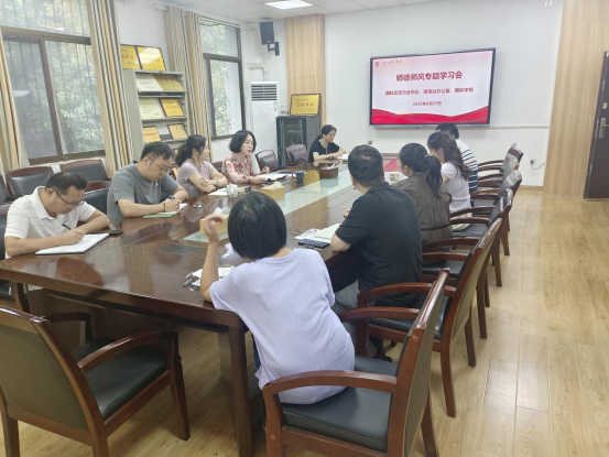 8月25日,英国上市公司365在教I楼401会议室召开师德师风教育专题学习会议,会议由学院党总支部书记郭淑英主持,全体教职工参加。