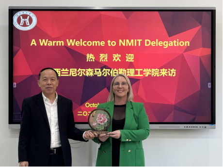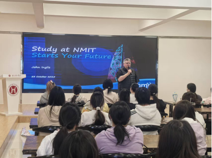 会后,凯特·尼姆副校长一行赴艺术学院观摩课堂教学,慰问本学期NMIT派驻我校的三位外籍教师,并主持召开项目说明会。国际课程主任约翰·英格里斯详细介绍了NMIT的校园环境、教学资源、入学要求、学业支持政策及视觉传达设计专业毕业生就业前景,并与项目学生进行了现场互动交流。(通讯员:周程)