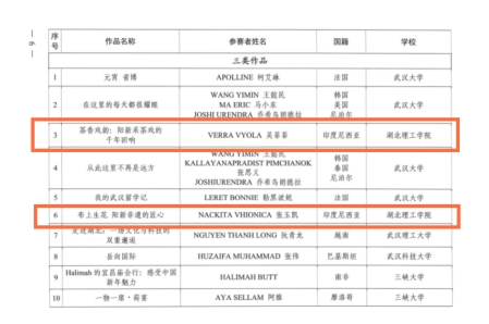 近日,由省广播电视局、省委网信办、省教育厅联合主办的“向未来·共筑长江梦”2025年湖北省外国留学生短视频大赛圆满落幕。我校来华留学生的两部参赛作品《茶香戏韵:阳新采茶戏的千年回响》《布上生花:阳新非遗的匠心》从众多作品中脱颖而出,获得三等奖。